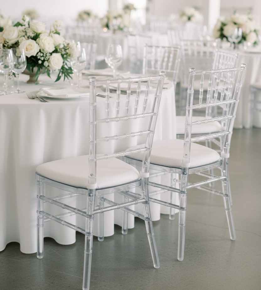 For couples planning weddings, understanding why chiavari chairs are the perfect choice for your dream wedding helps explain their enduring popularity—and clear versions take these benefits even further by creating an unobstructed view of beautiful linens, floor designs, and architectural details.